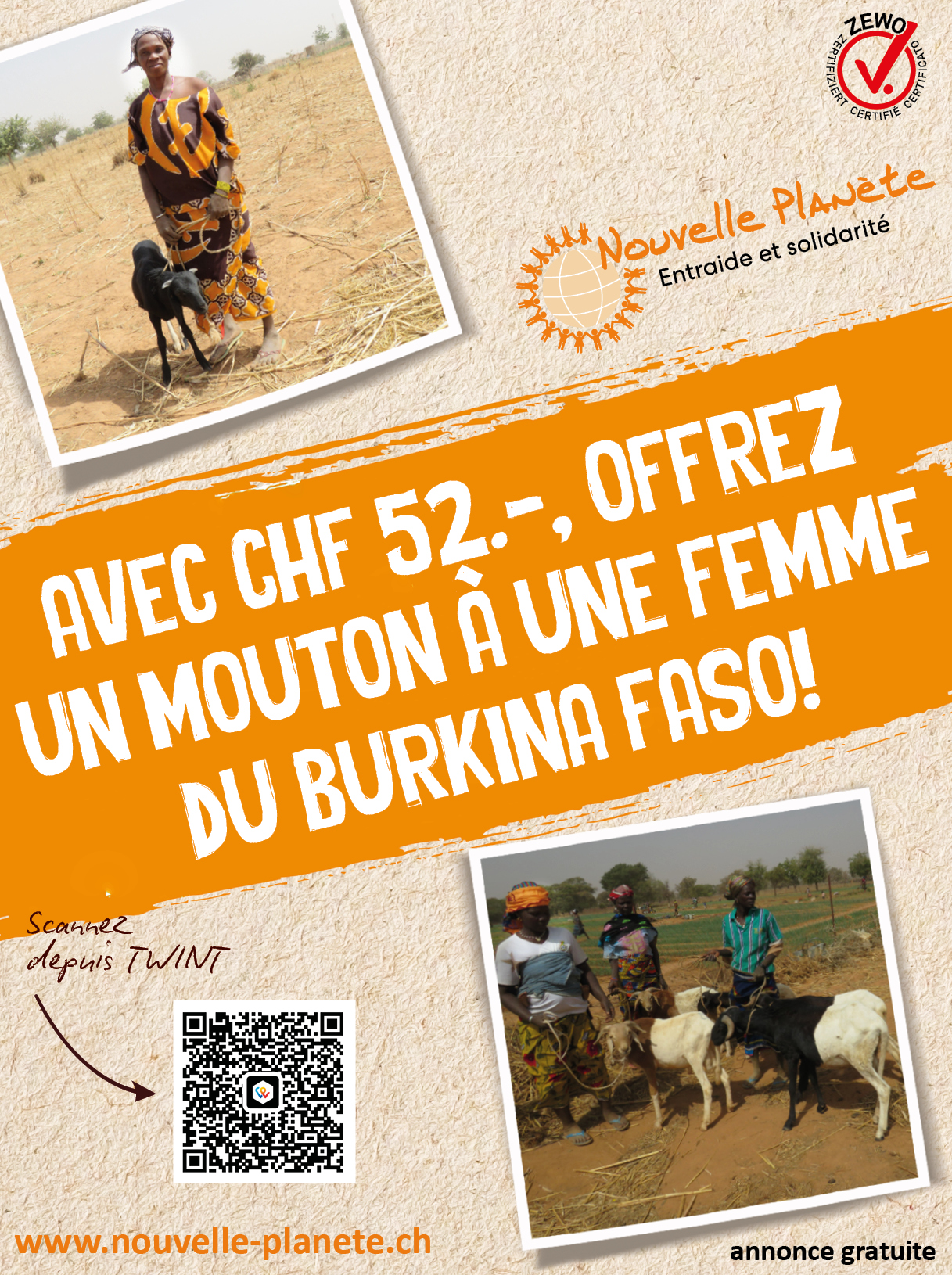En insérant l’une ou l’autre de ces annonces pour combler un espace dans vos pages rédactionnelles ou publicitaires, vous contribuez à faire connaître les actions de Nouvelle Planète en faveur de projets concrets et durables dans nos pays d’intervention.